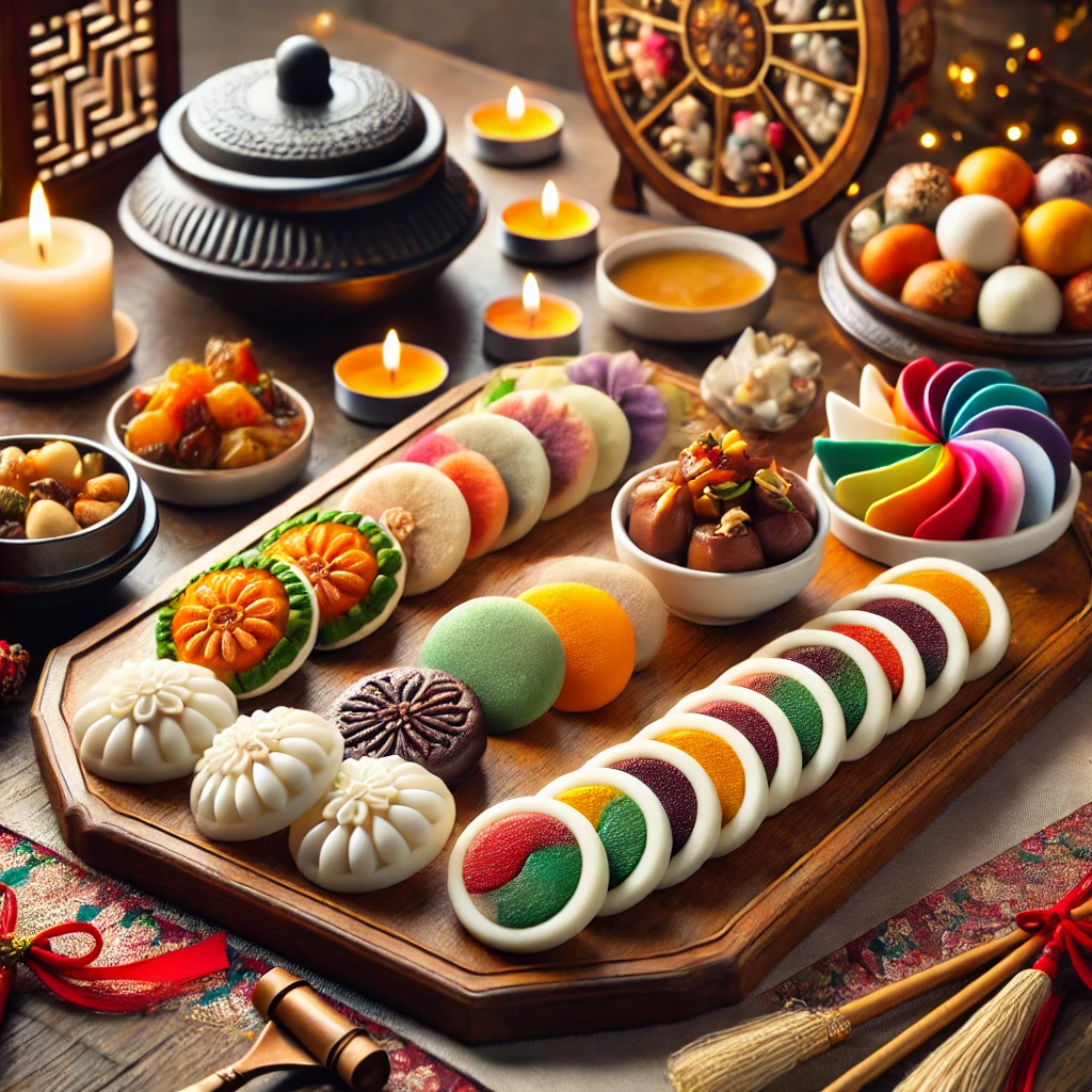 송편과 한과는 전통 디저트로, 달콤한 맛이 특징입니다. 송편은 쌀가루로 만들어 탄수화물이 많고, 한과는 설탕과 꿀로 맛을 냅니다.