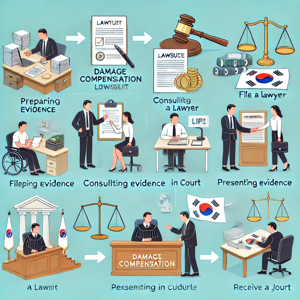 - 소송 제기: 법원에 손해배상 소송을 제기하고, 피고에게 통지합니다.