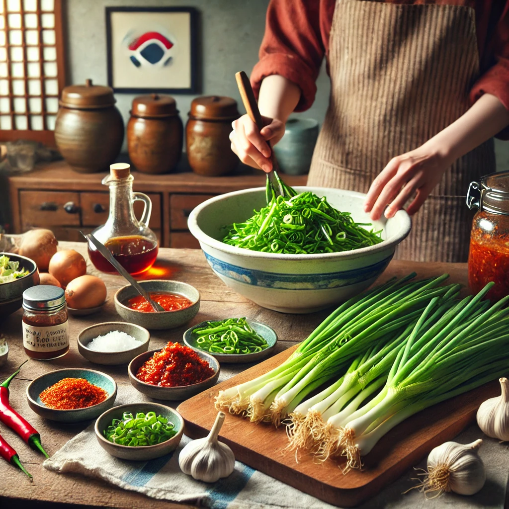 파김치의 기본 재료는 매우 간단합니다. 준비해야 할 재료는 신선한 대파, 고춧가루, 다진 마늘, 생강, 젓갈(멸치젓 또는 새우젓), 설탕, 소금 등입니다. 이외에도 개인 취향에 따라 양파나 배를 갈아서 넣어 달콤한 맛을 더할 수 있습니다.