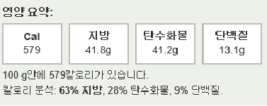 쿠키앤크림 100g 칼로리가 579cal 칼로리로
